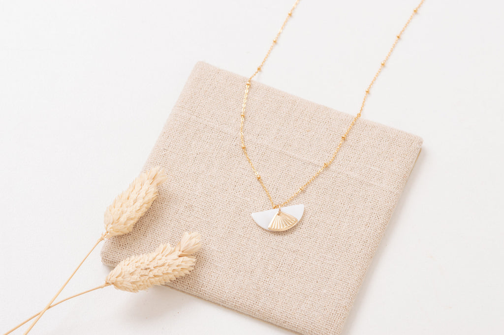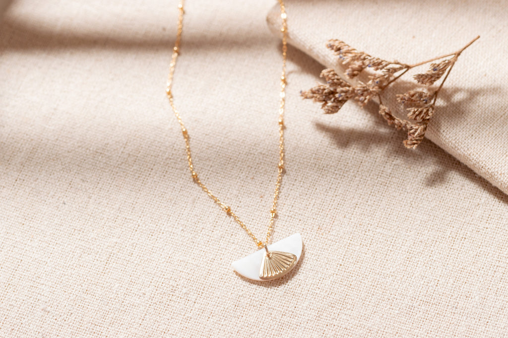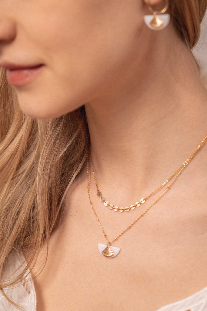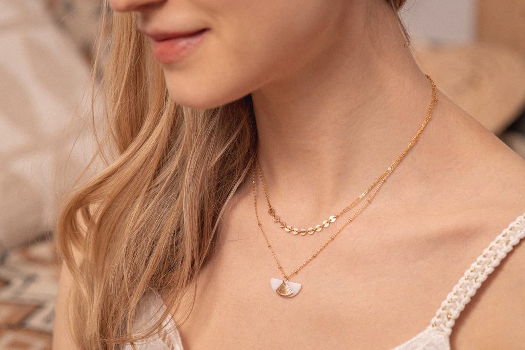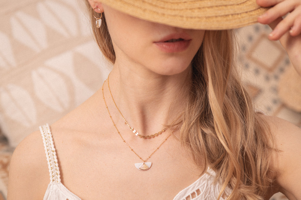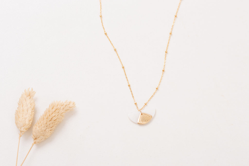 Brighten your outfit with the TAHITI necklace, the half-moon nacre will capture the rays of the sun to embellish your neckline during the day and reflect the clarity of the moon during your evenings.