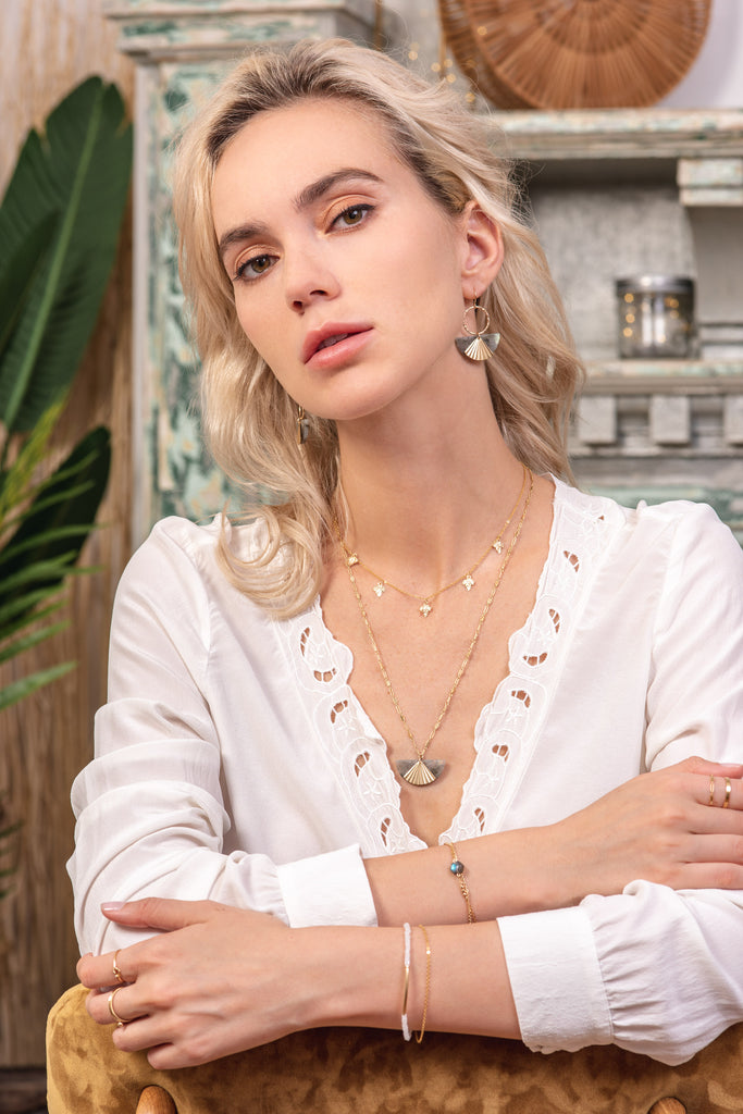 We use 14k Gold-Filled imported from the USA which contains a minimum of 5% of 14k solid Gold, is water resistant, cannot induce any allergy and can last a lifetime if stored and used with good care. Unlike Gold Plated jewelry which only contains around 0.05% 14k solid Gold, Gold-filled jewelry doesn’t tarnish or loose its color.