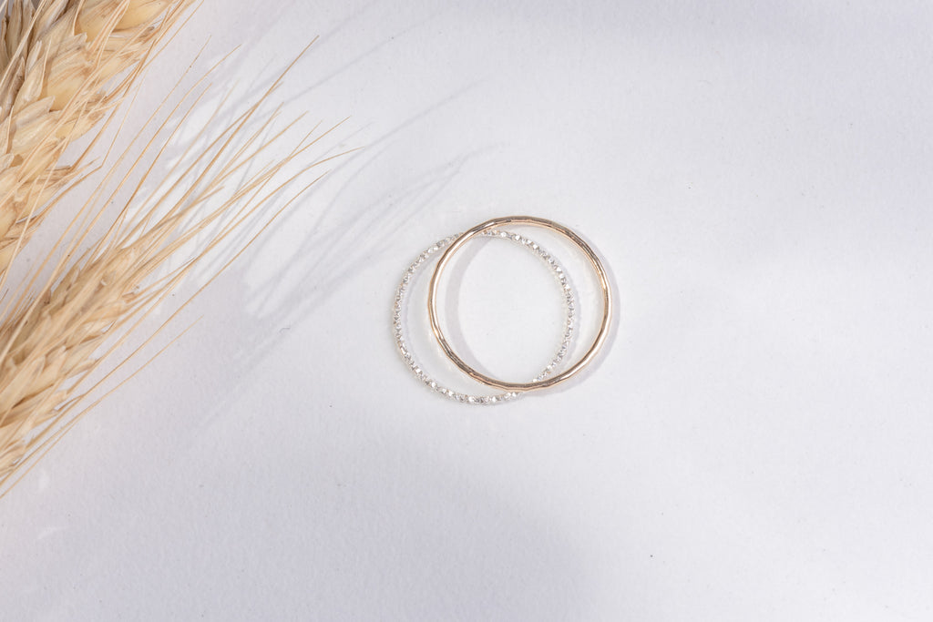 Some of our 14K gold-filled rings may show a tiny area (around 1–1.5mm) with a slightly silvery tone at the bottom. This is completely normal on gold-filled jewellery that has been soldered, as the heat used to join the metal can cause a subtle change in colour at the joint.