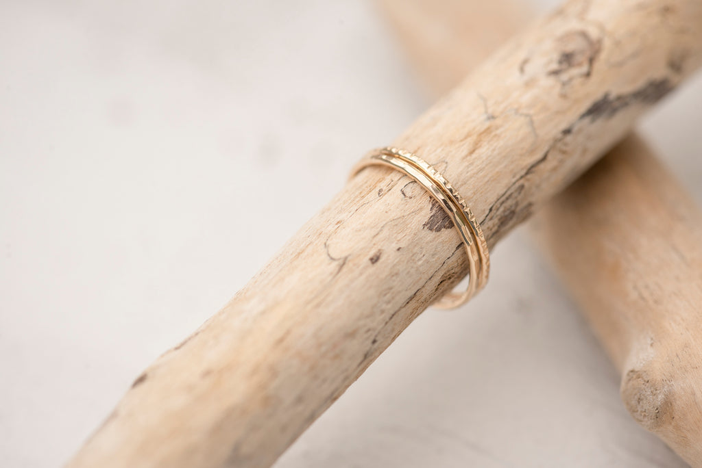 Some of our 14K gold-filled rings may show a tiny area (around 1–1.5mm) with a slightly silvery tone at the bottom. This is completely normal on gold-filled jewellery that has been soldered, as the heat used to join the metal can cause a subtle change in colour at the joint.
