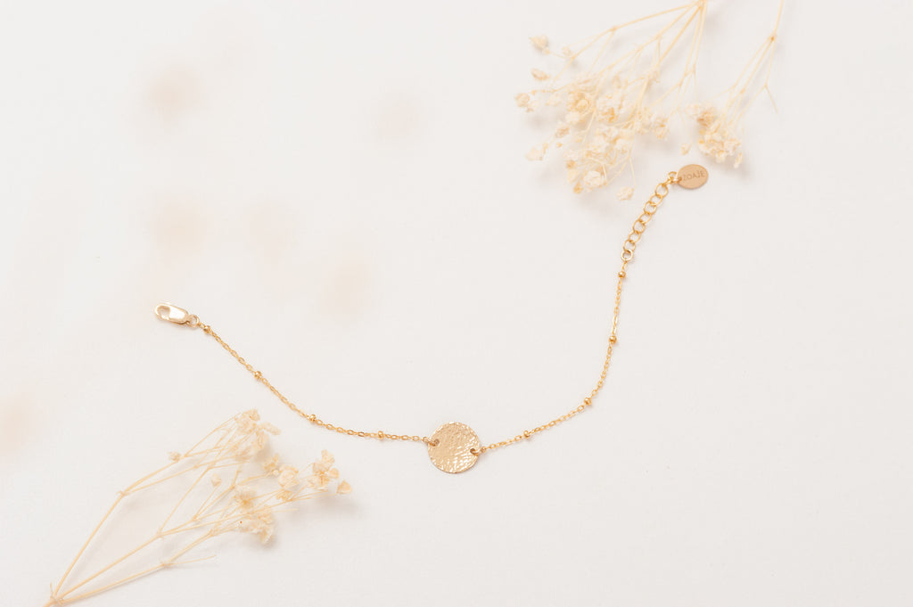 Portez le soleil au poignet avec le bracelet EQUATEUR en Or Gold-filled 14k martelé et ses brillantes petites perles.