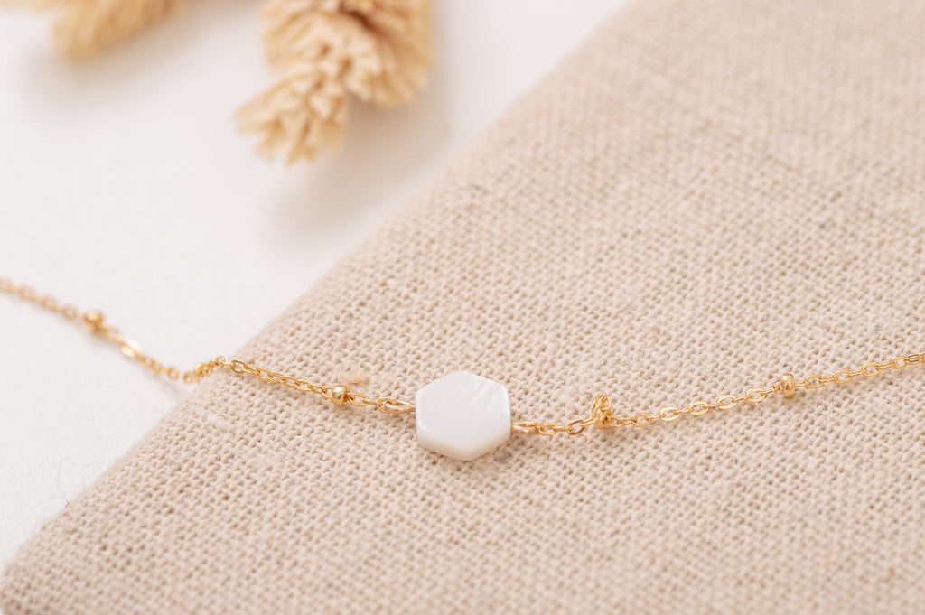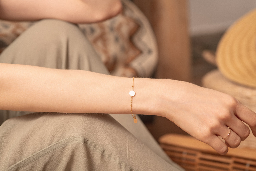 Célébrez votre singularité aussi raffinée que sophistiquée avec notre bracelet TAHITI dont la pierre en nacre blanche saura ravir votre poignet.