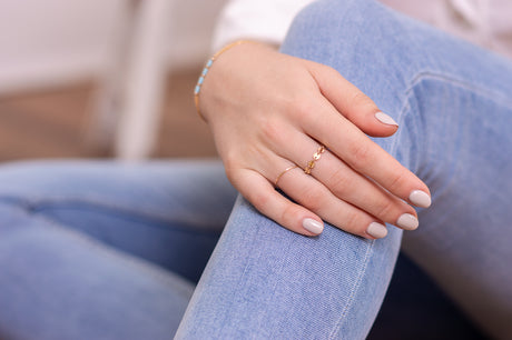 Some of our 14K gold-filled rings may show a tiny area (around 1–1.5mm) with a slightly silvery tone at the bottom. This is completely normal on gold-filled jewellery that has been soldered, as the heat used to join the metal can cause a subtle change in colour at the joint.