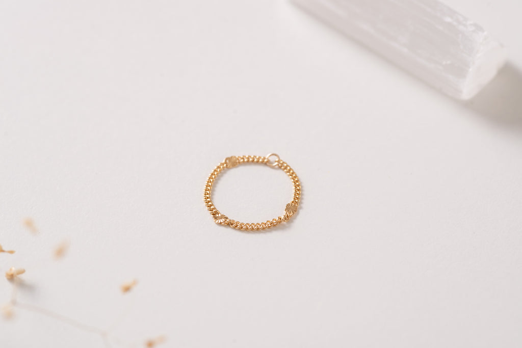 Some of our 14K gold-filled rings may show a tiny area (around 1–1.5mm) with a slightly silvery tone at the bottom. This is completely normal on gold-filled jewellery that has been soldered, as the heat used to join the metal can cause a subtle change in colour at the joint.